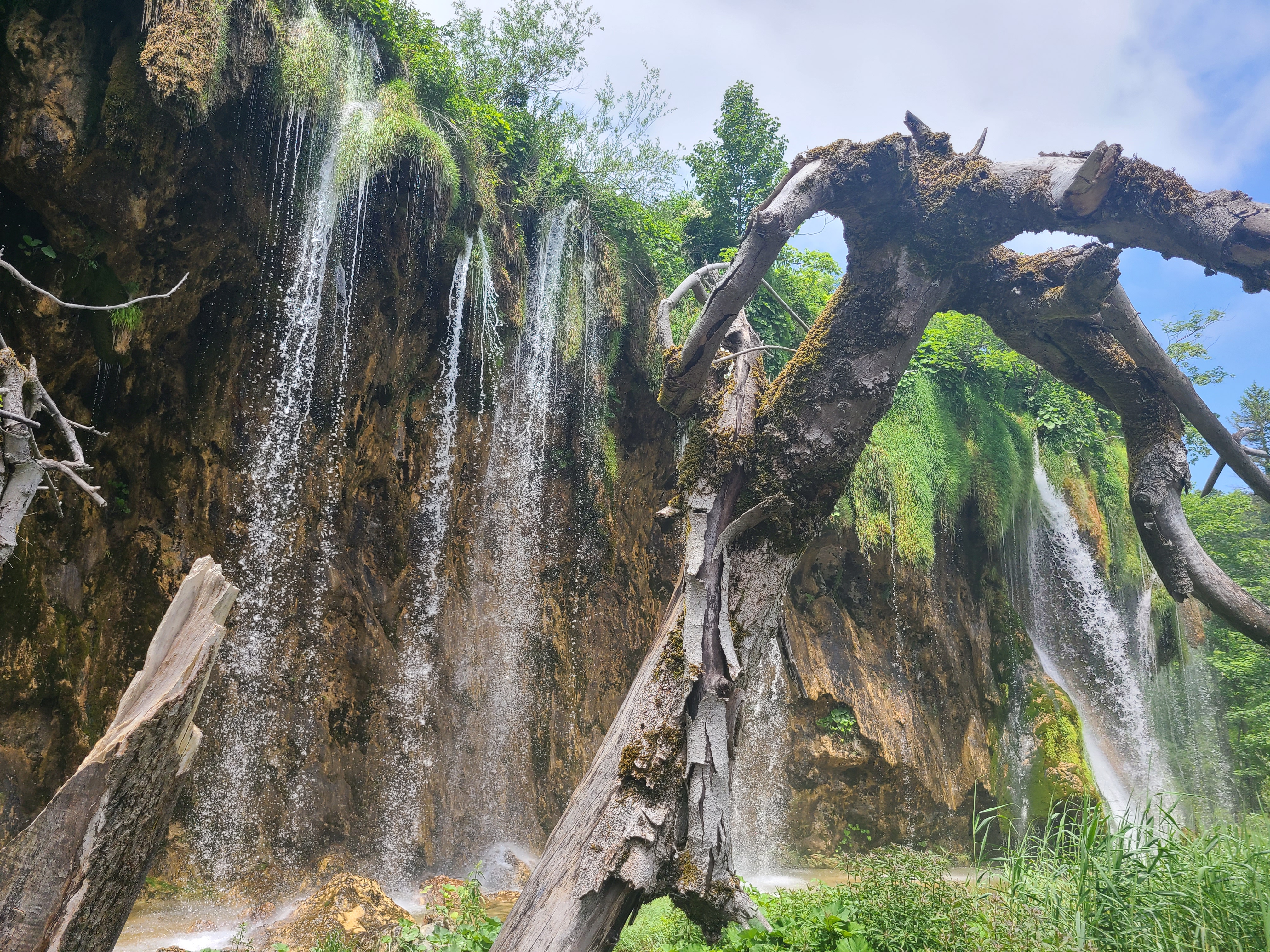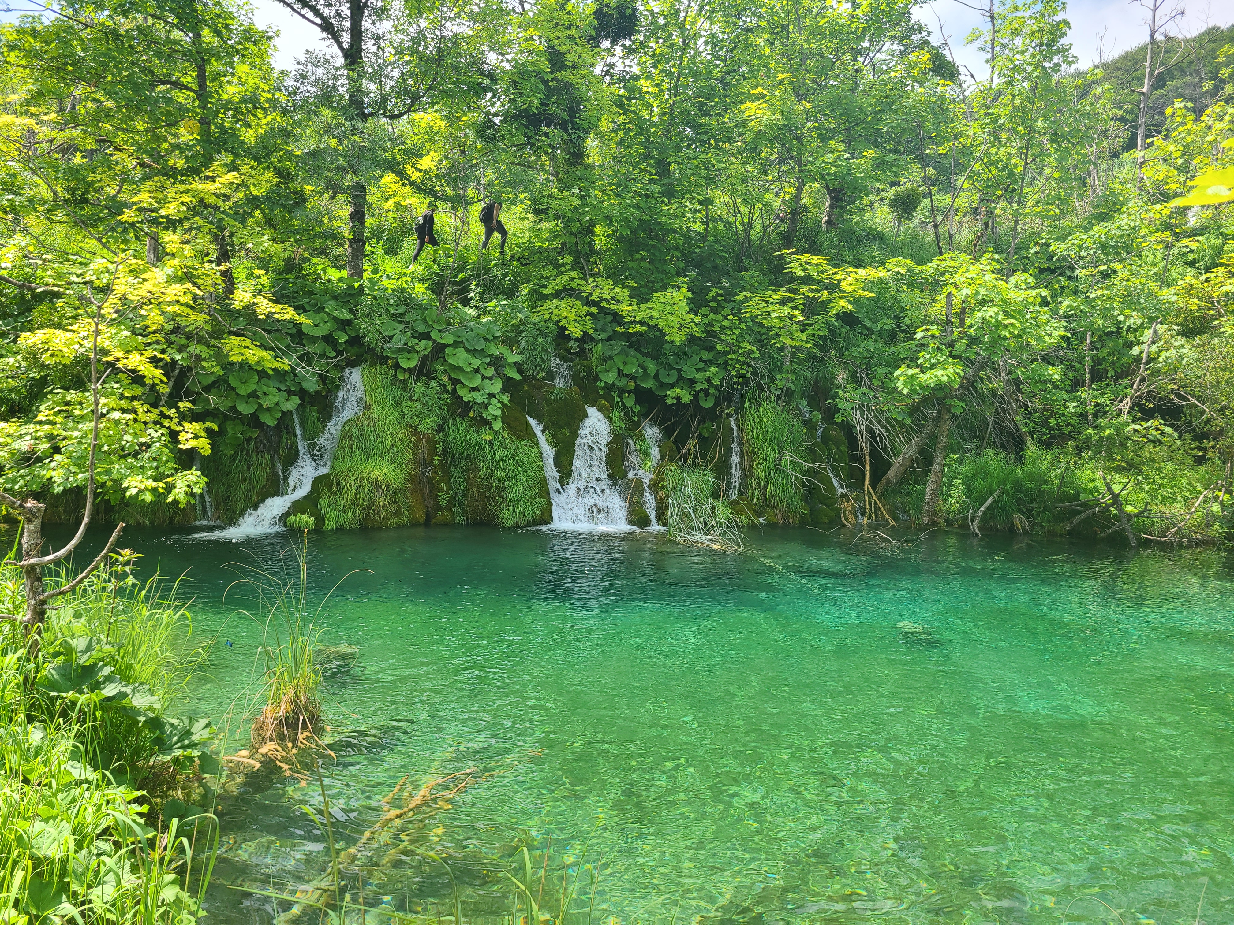 플리트비체의 호수들은 관광객들을 위해 친환경 전기 셔틀버스와 보트를 운행한다. 둘째 날 나는 셔틀을 타고 산 정상 부근의 스테이션 3에서 내려, 상층 호수군을 따라 잘 정비된 오솔길과 데크길을 걸으며 아래쪽 호수로 향했다. 각각의 호수에는 이름이 있지만, 굳이 기록하려 하지는 않았다. 호수는 물에 녹아 있는 광물질과 햇빛의 반사에 따라 계절과 날씨마다 색이 달라진다고 한다. 옥빛, 에메랄드빛, 청록빛—오늘은 운이 따른다면 그 세 가지 빛을 모두 보고 싶었다. 시간이 흐르자 강렬한 햇살이 청록빛 호수를 투명한 옥빛과 에메랄드빛으로 바꾸어 놓았다. 호수의 영롱한 색과 폭포의 물소리가 뒤섞여, 마치 한 편의 교향곡처럼 들려왔다.