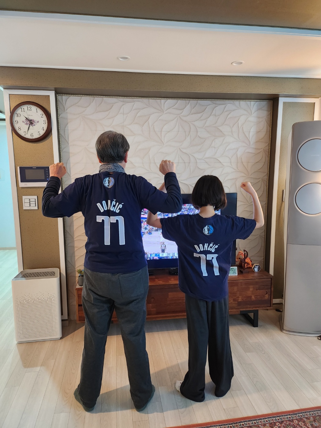 이어 2021년 도쿄 올림픽에서 약체로 평가되던 슬로베니아 농구대표팀을 4강까지 이끈 22세의 루카 돈치치(Luka Dončić)가 등장했다. 나는 곧 그의 열혈 팬이 되었고, NBA 댈러스 매버릭스 경기를 놓치지 않게 되었다. 스포츠에 관심을 보이기 시작한 손녀를 은근히 팬덤으로 끌어들였고, 해외 직구로 매버릭스 티셔츠를 주문해 주말 홈경기 중계 때 함께 입고 응원했다. 올해 초 돈치치가 LA 레이커스로 깜짝 트레이드되었을 때, 손녀와 나는 전 세계 팬들과 함께 당혹감과 분노를 나누었다.