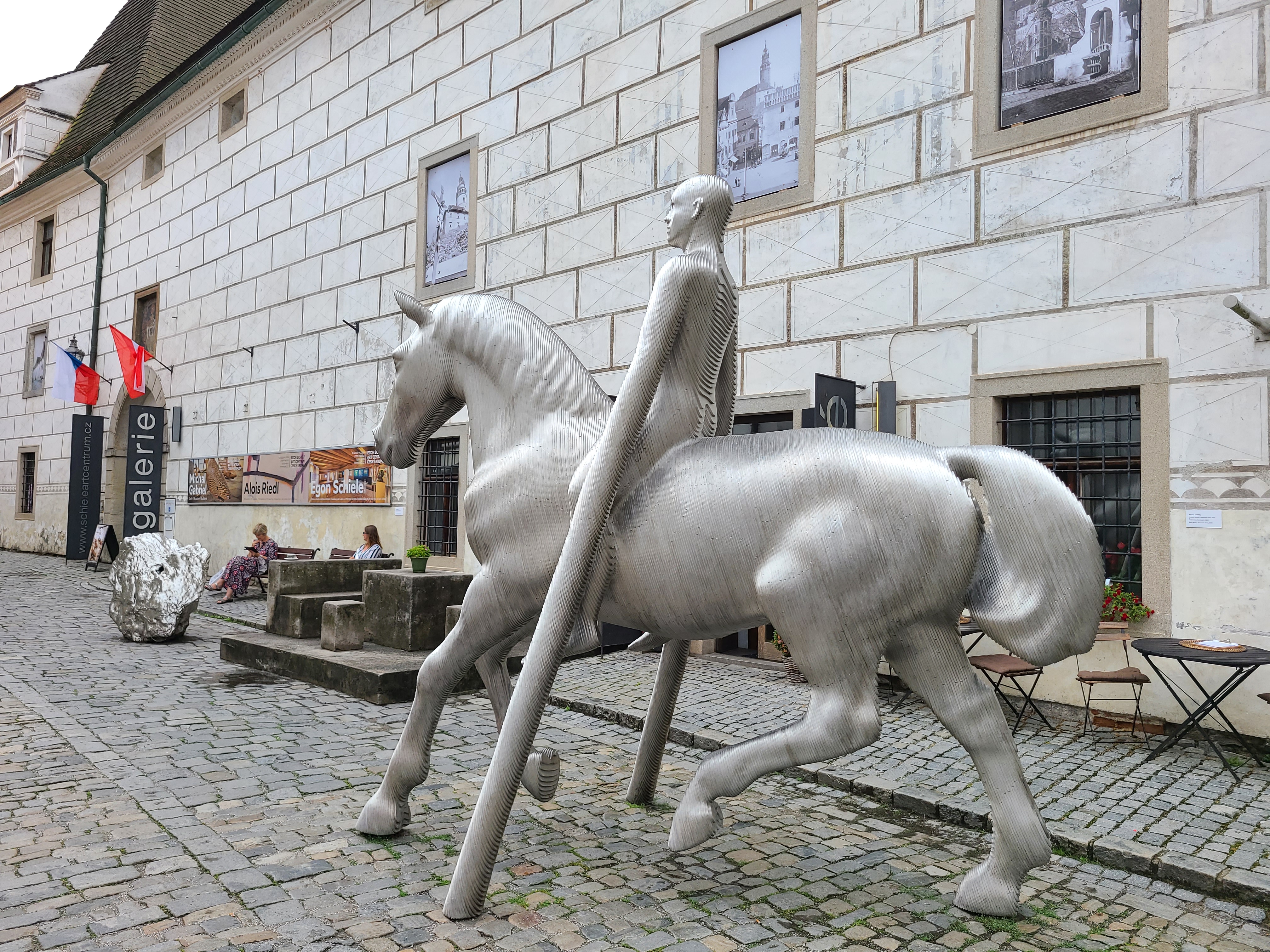 버스정류장에 도착하자 예보에 없던 비가 내렸다. 잿빛 하늘 아래 공기는 차가웠고, 보도 위에는 인적이 거의 없었다. 편의점 처마 밑에서 커피 한 잔을 들고 빗방울이 잦아들기를 기다렸다. 비가 그친 뒤, 천천히 올드타운으로 향했다. 나는 방향감각이 좋지 않아 구글맵의 ‘라이브뷰’를 써도 종종 고초를 겪는데, 이번에도 첫 방향을 잘못 잡았다. 앱은 태연히 ‘계속 가세요’를 반복했고, 결국 정상 거리의 세 배쯤을 반대로 돌아서야 목적지에 닿았다. 그나마 크룸로프의 둥근 지형 덕분이었다. 피로했지만, 인적 드문 거리의 고요함은 묘하게 위로가 되었다. 젖은 벽돌 냄새와 강물의 흙내, 구름 사이로 스며드는 희미한 빛이 오히려 한 폭의 수묵화를 완성하고 있었다. 라트란 거리에 접어들자, 마치 누군가 신호를 보낸 듯 사람들이 어디선가 쏟아져 나왔다.