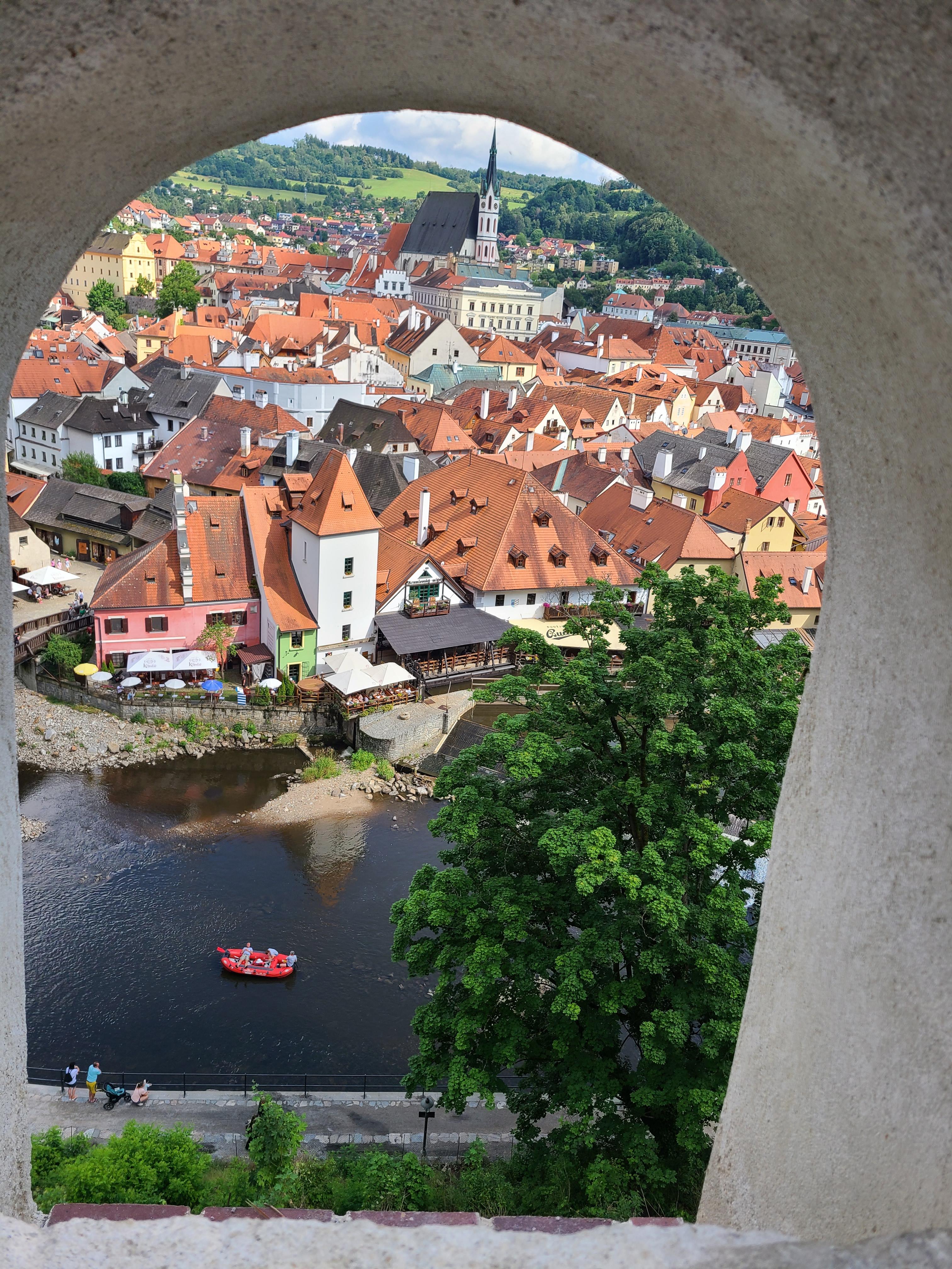 체스키크룸로프(Český Krumlov)는 블타바(Vltava) 강이 품은 첫 도시이자, 그 선율을 가장 온전히 느낄 수 있는 곳이다. 강폭은 부데요비체보다 훨씬 좁고, 물길은 도시를 감싸 안듯 수차례 굽이돈다. 그 유연한 곡선 위로 고풍스러운 붉은 지붕들이 얹혀 있어, 멀리서 보면 마치 악보 위의 음표처럼 보인다.